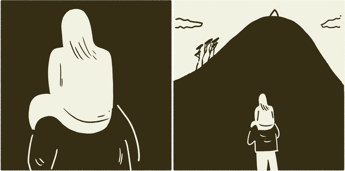 Except for that ponderous hill looming in the morning, gleaming in the evening. I keep my head up, pointed to the hill. I take the long way to school with my daughter so we can stand at its feet for a moment.