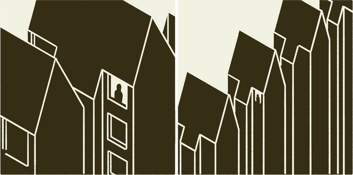 A monotony that inspires acquiescence. Labyrinthine symmetry. No clear exit. No way out for the listless children kicking crisp bags into the wind.